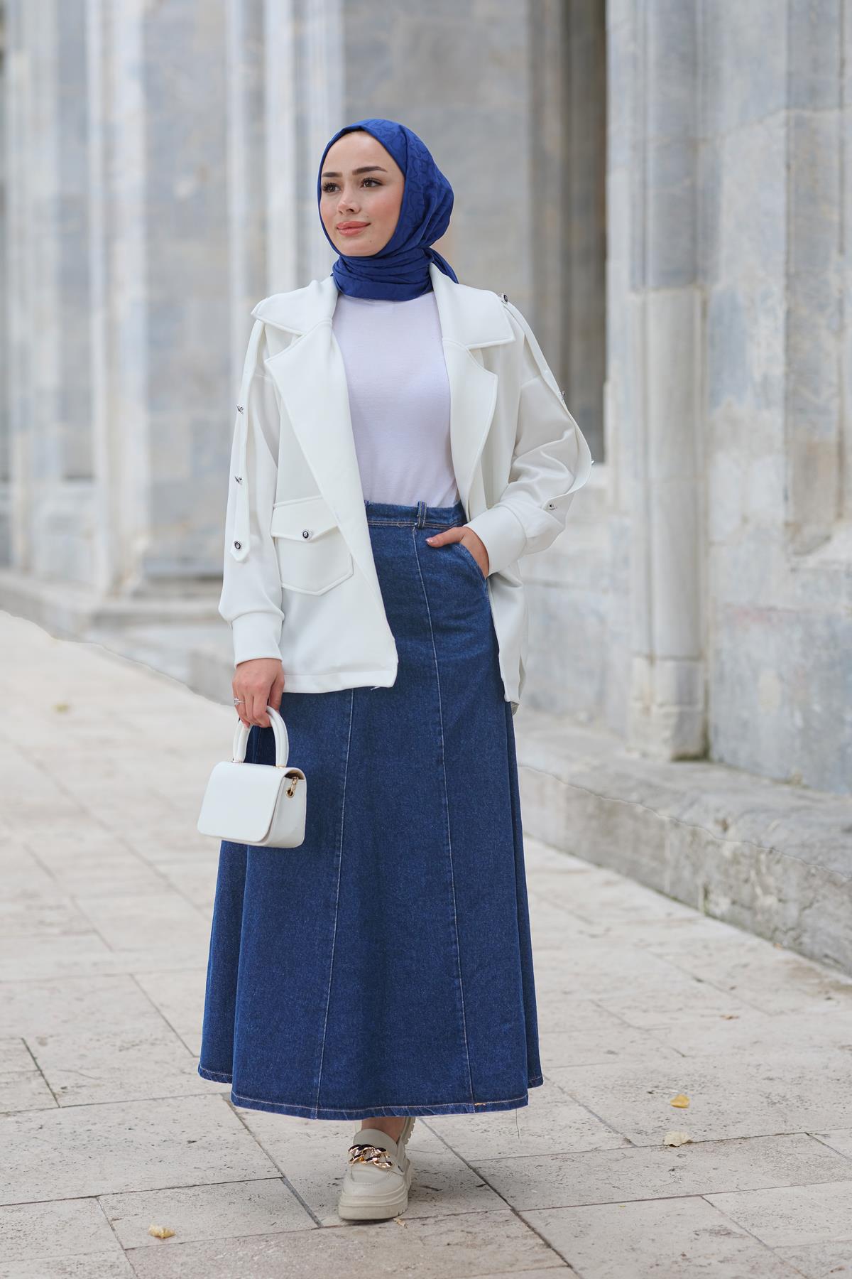 Editör Notu: Zamansız bir şıklık sunan Cepli A Kesim Kot Etek, kumaşıyla hem dayanıklı hem de rahat bir görünüm sunar. Genişleyen A kesim tasarımı, her vücut tipine uyum sağlayarak zarif bir siluet oluşturur. Klasik bir tişört ya da şık bir bluz ve ceketle mükemmel bir uyum yakalayarak, modanın vazgeçilmezi olmayı başarır. Gardırobunuzda mutlaka yer alması gereken bu parça, stilinize benzersiz bir dokunuş katar.