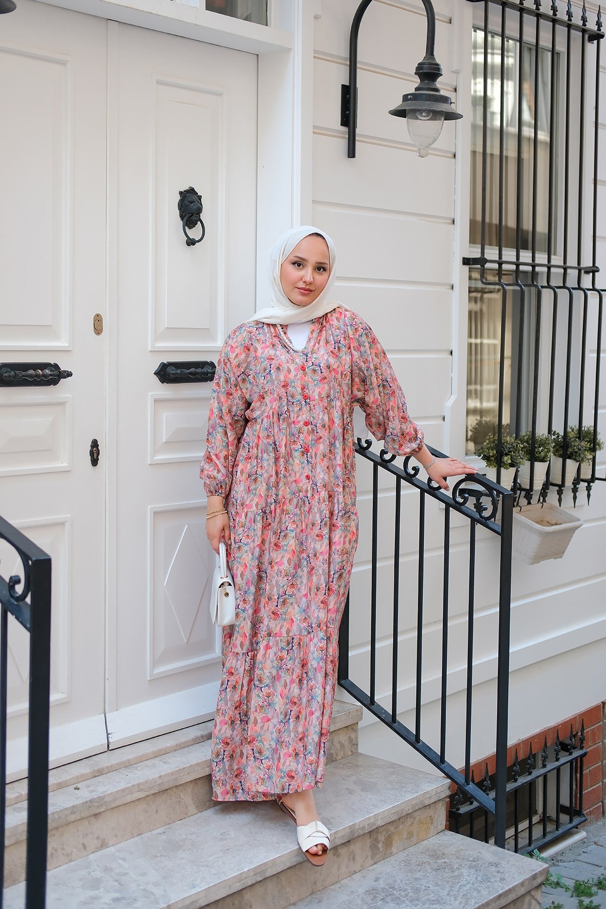 Çiçek Desenli Elbise Somon