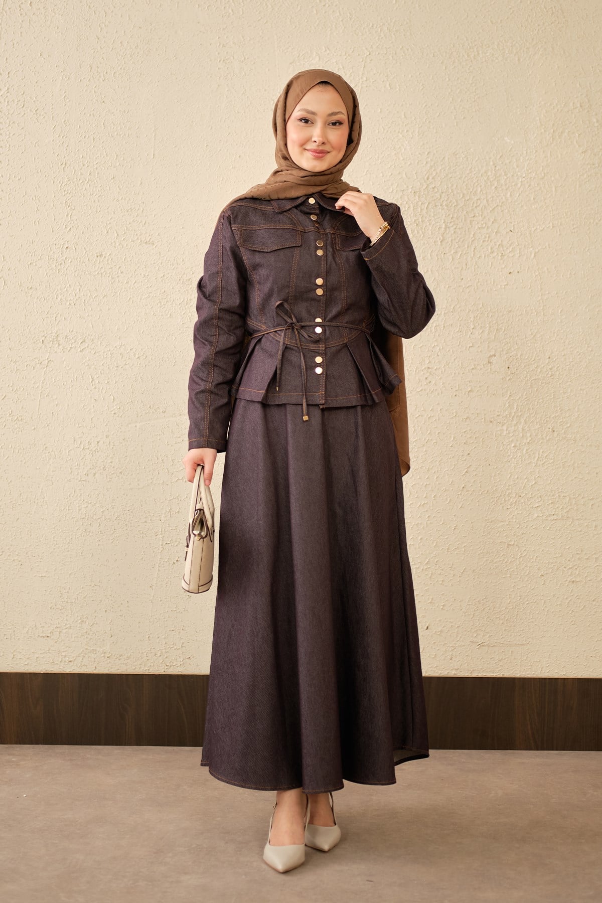 Çift Cep Görünümlü Dikiş Detay Kot Takım Mor