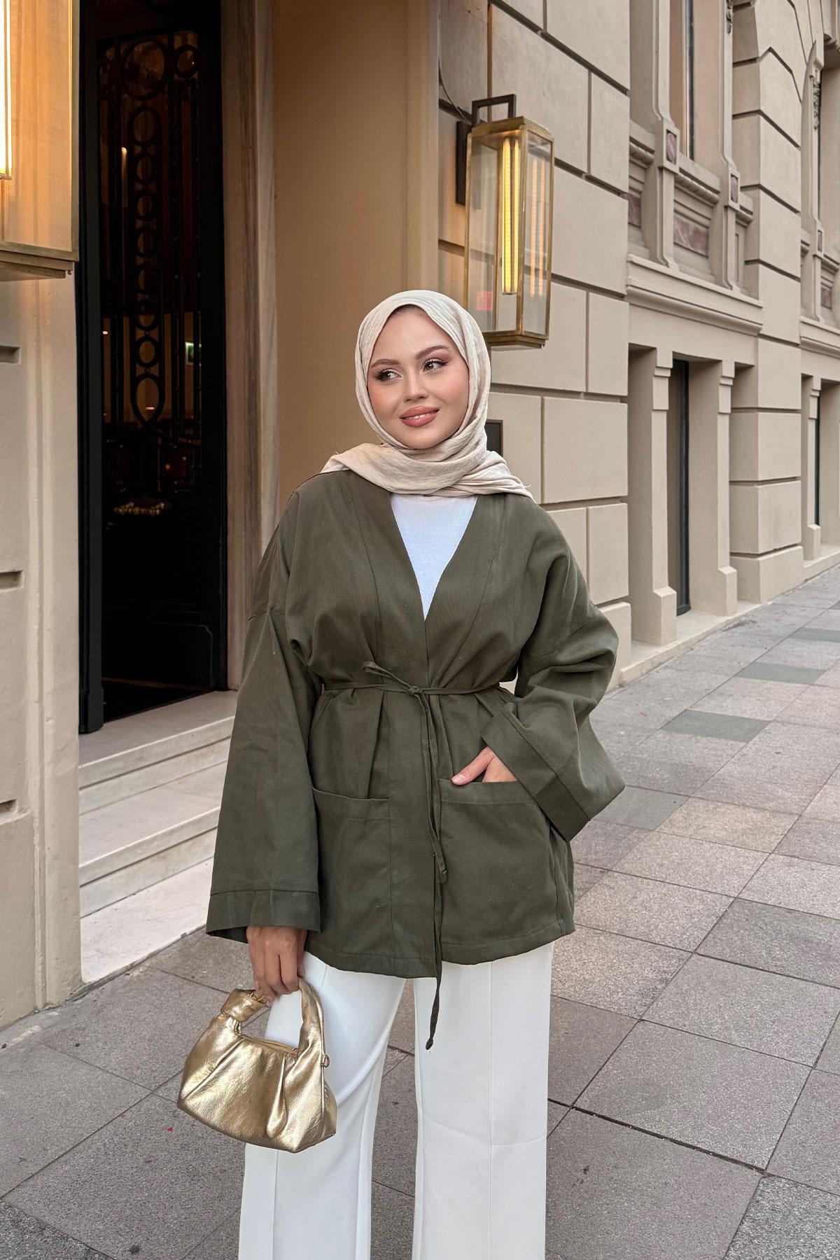 Çift Cepli Ceket Haki Yeşil