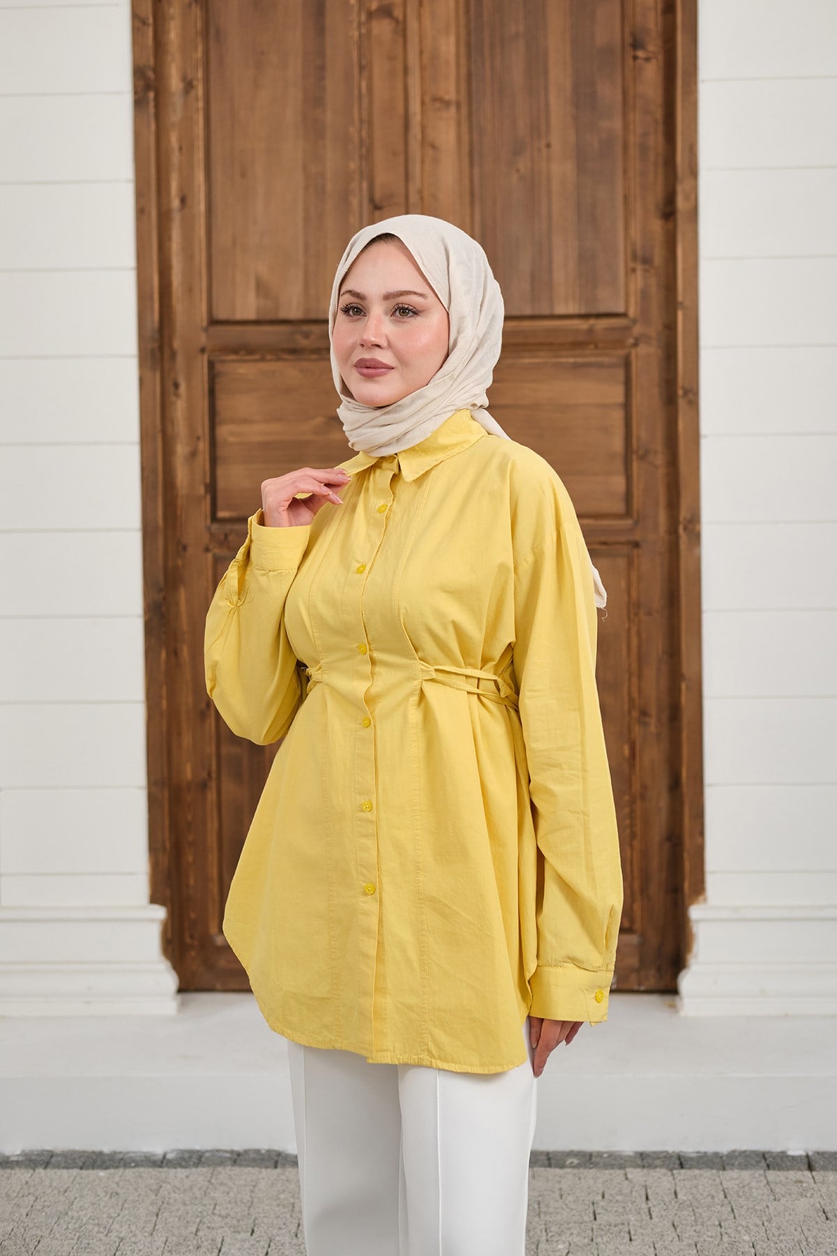 Çift Dikiş Detay Gömlek Sarı