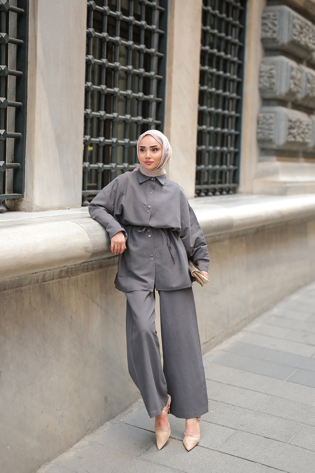 Çift Düğme Detaylı Takım Antrasit