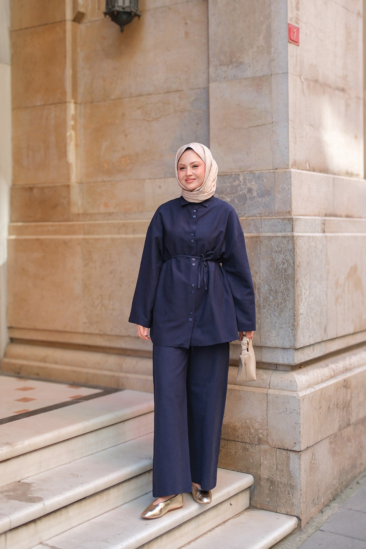 Çift Düğme Detaylı Takım Lacivert