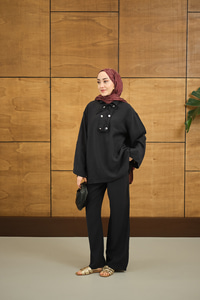 Çift Düğme Detaylı Takım Siyah