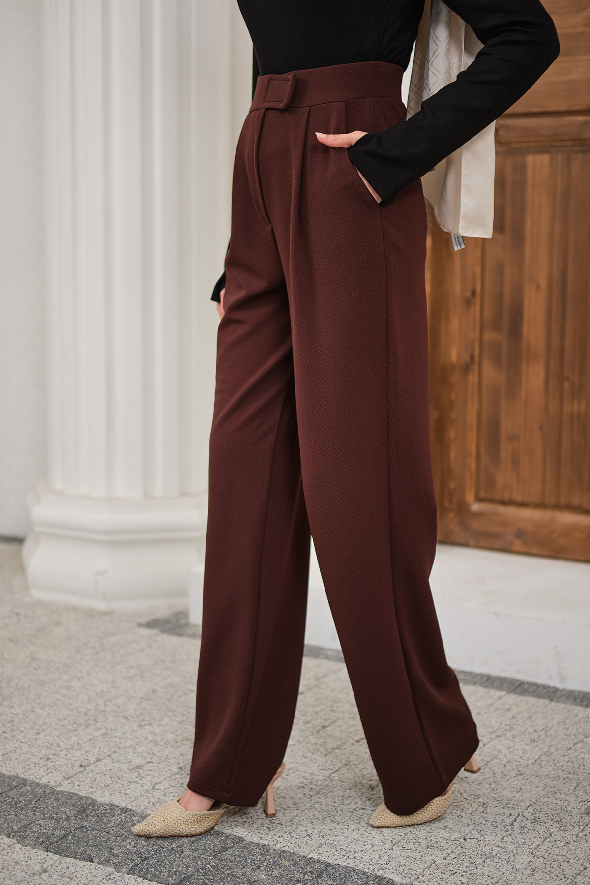 Cırtcırt Detay Kumaş Pantolon Acı Kahve