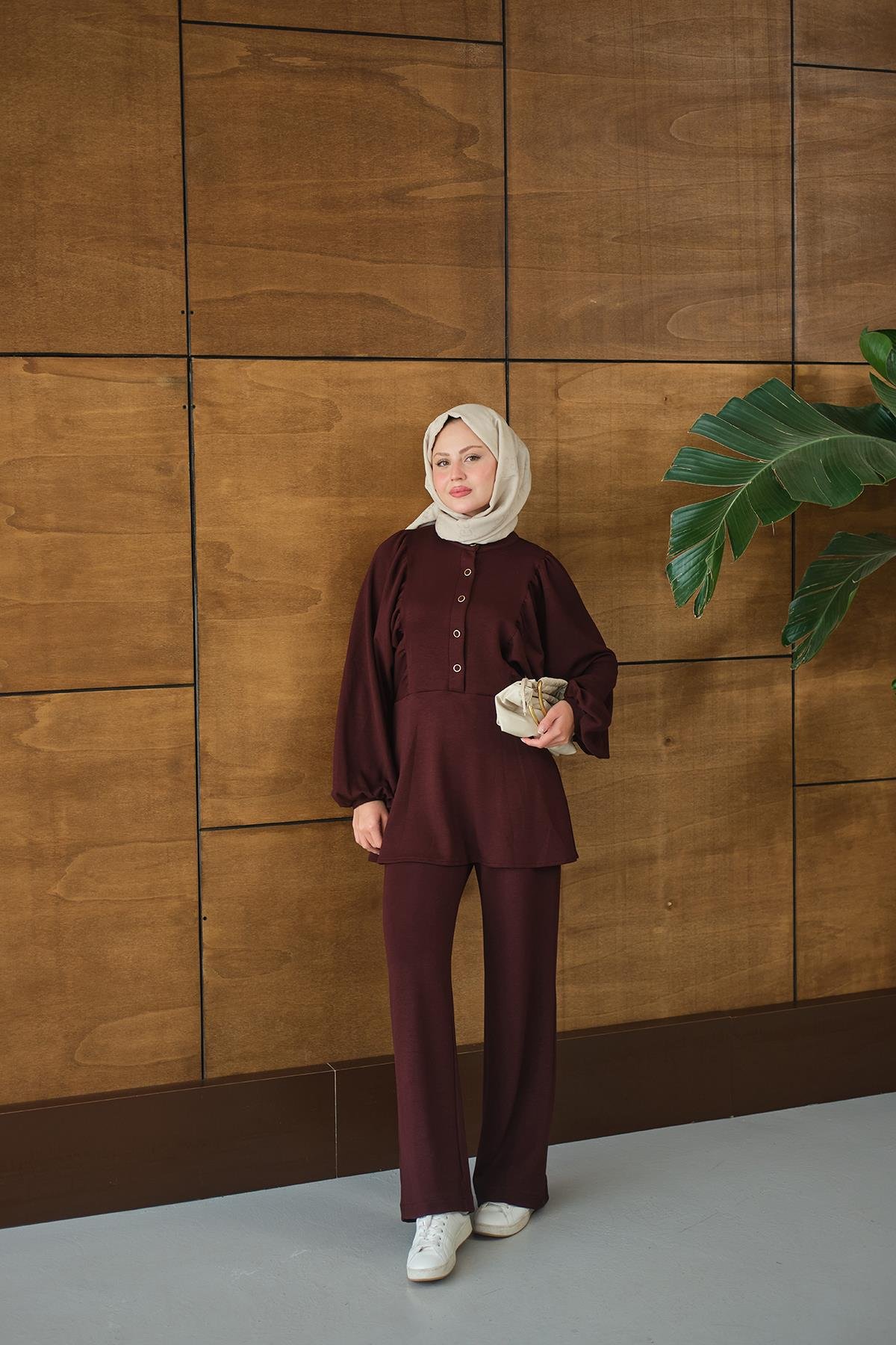 Çıtçıt Büzgü Detay İkili Takım Bordo
