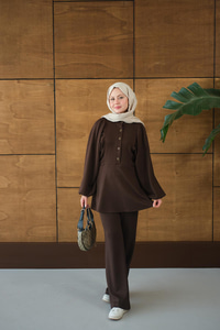 Çıtçıt Büzgü Detay İkili Takım Kahverengi