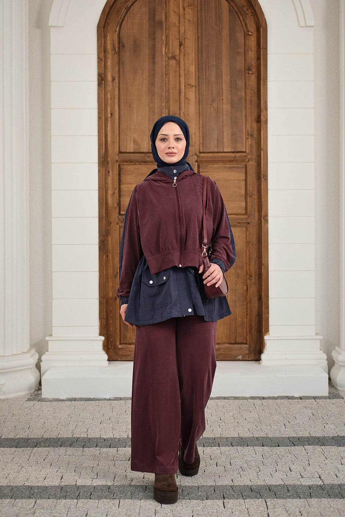 Çıtçıtlı Çift Kat Kapüşonlu Takım Lacivert