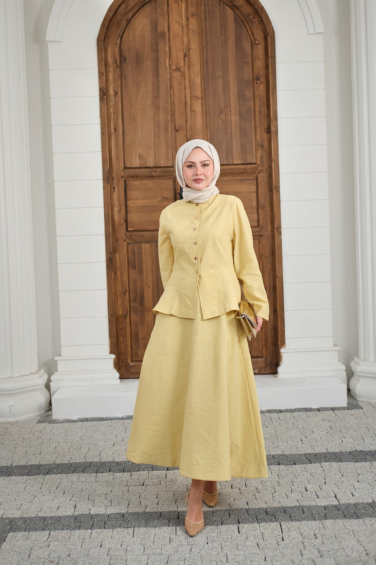 Çıtçıtlı Dikiş Detay Etekli Takım Sarı