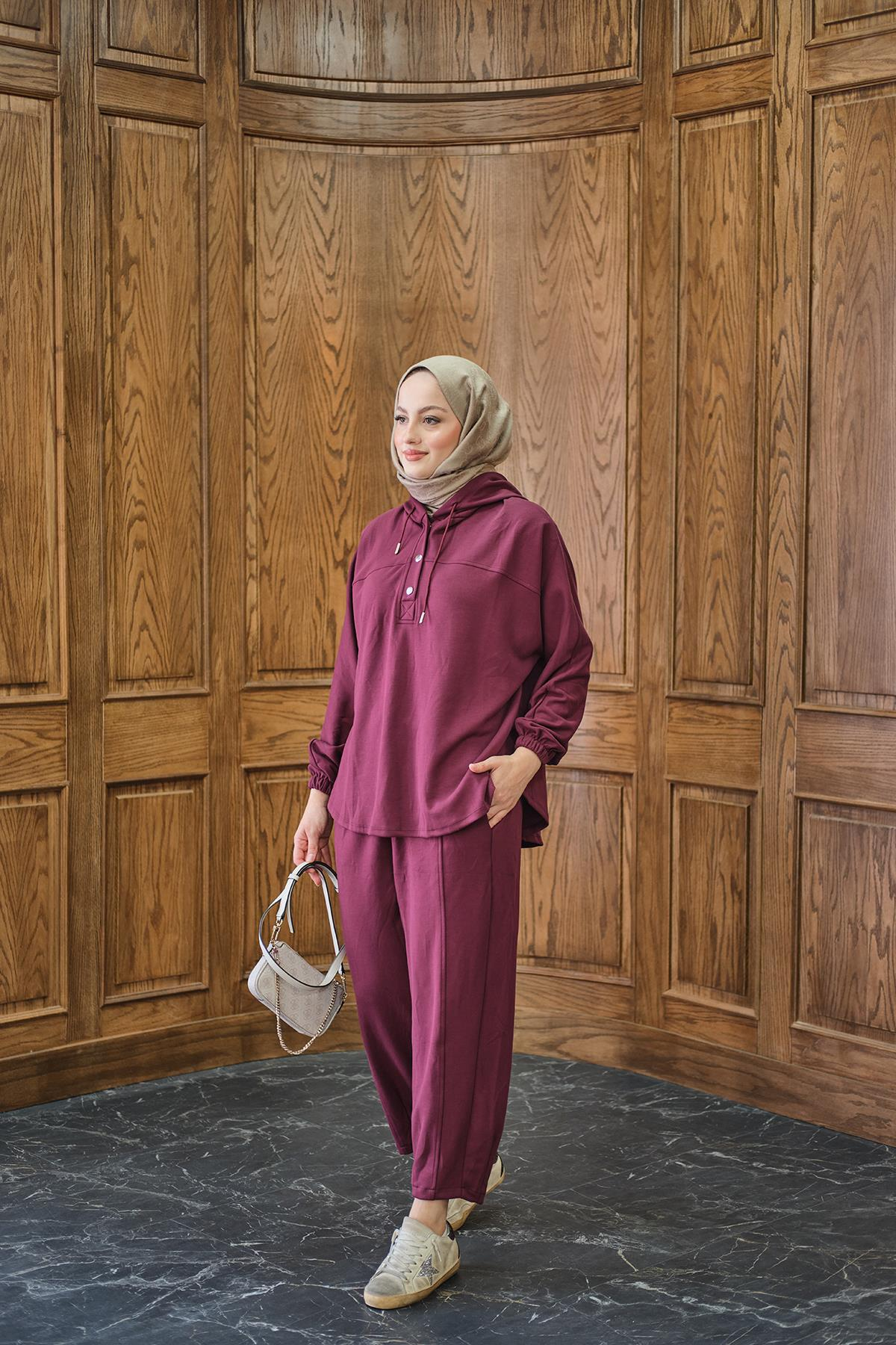 Çıtçıtlı İkili Takım Bordo