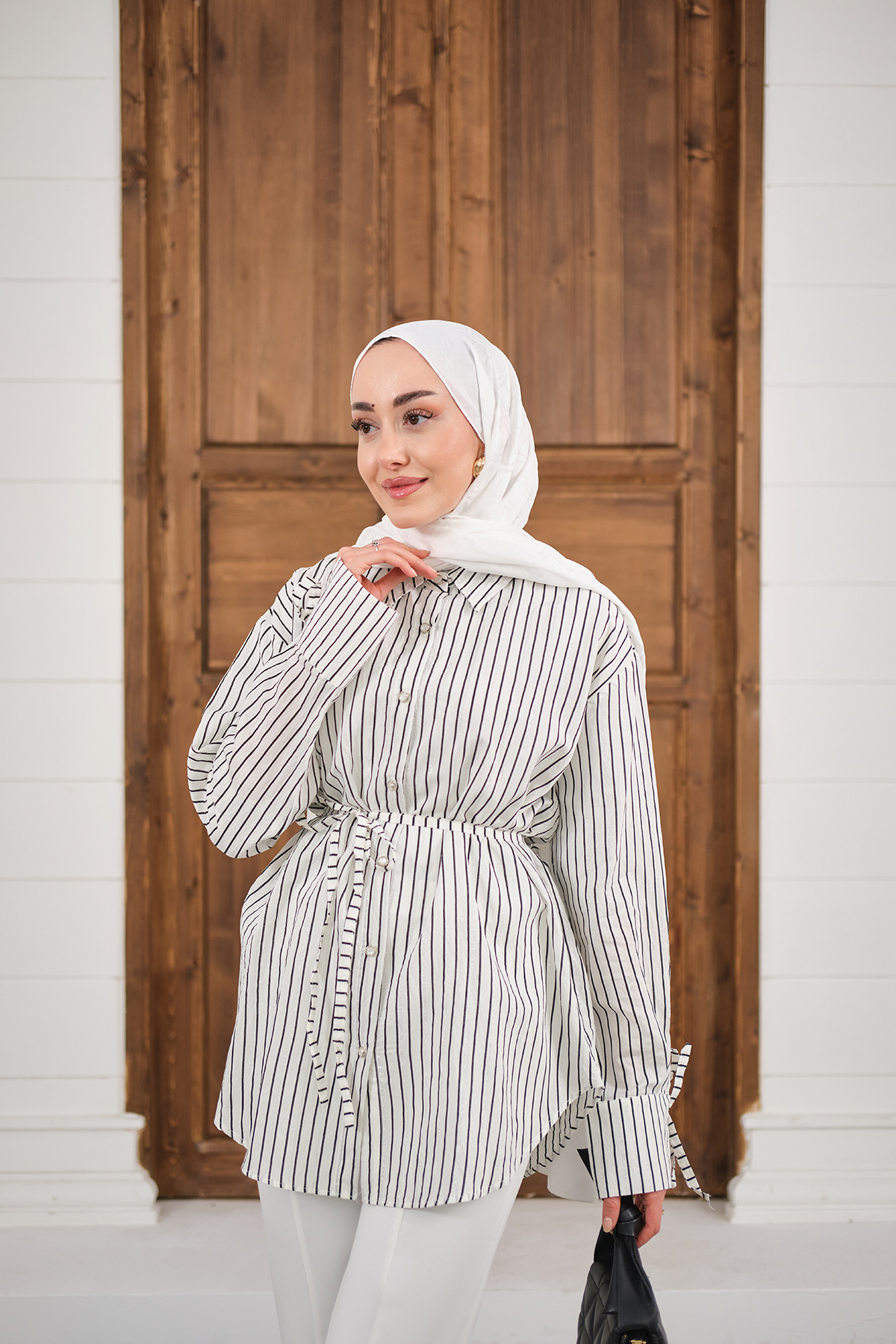 Çizgi Desenli Sim Detay Gömlek Siyah