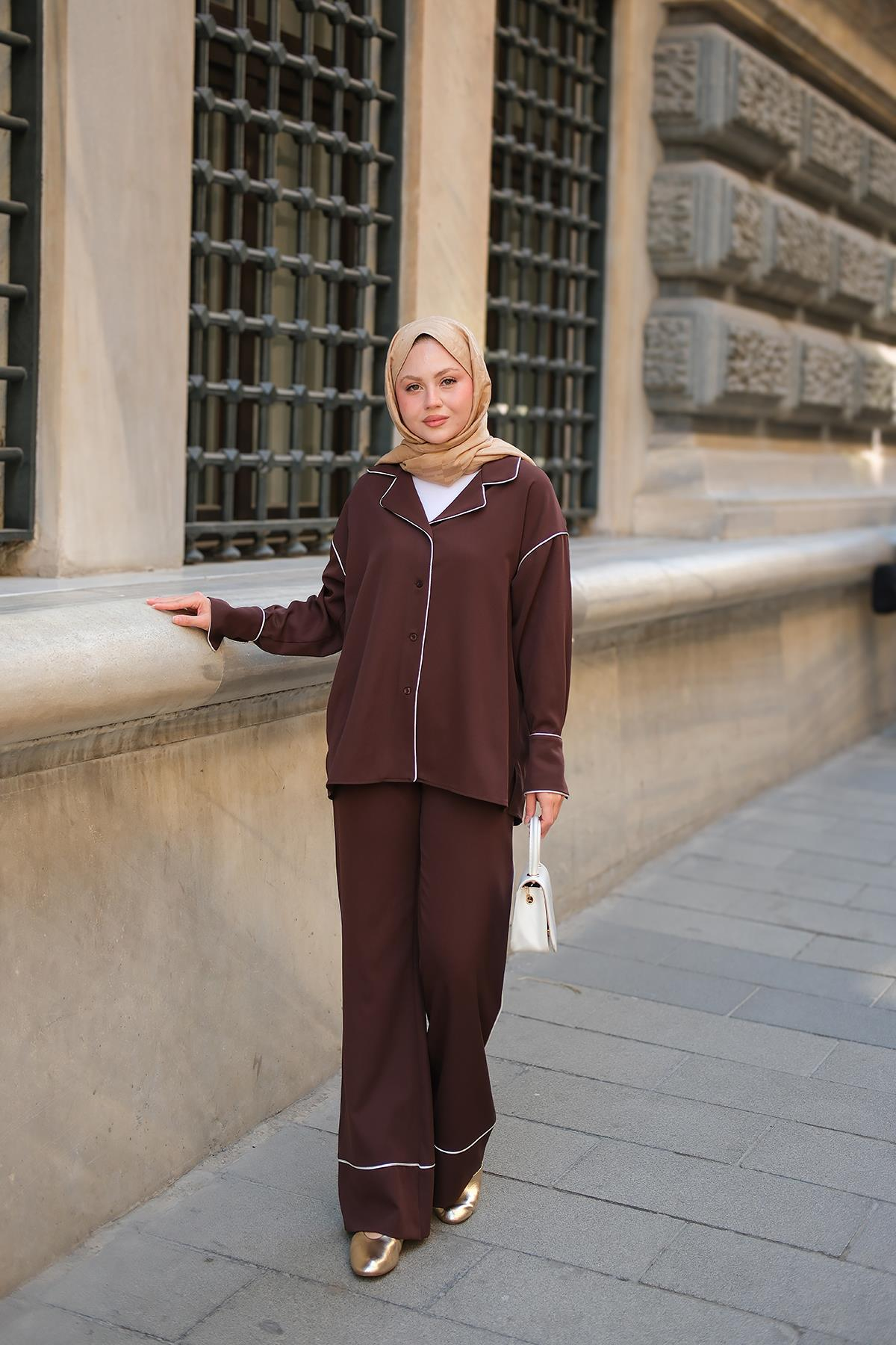 Çizgi Detay İkili Takım Kahverengi