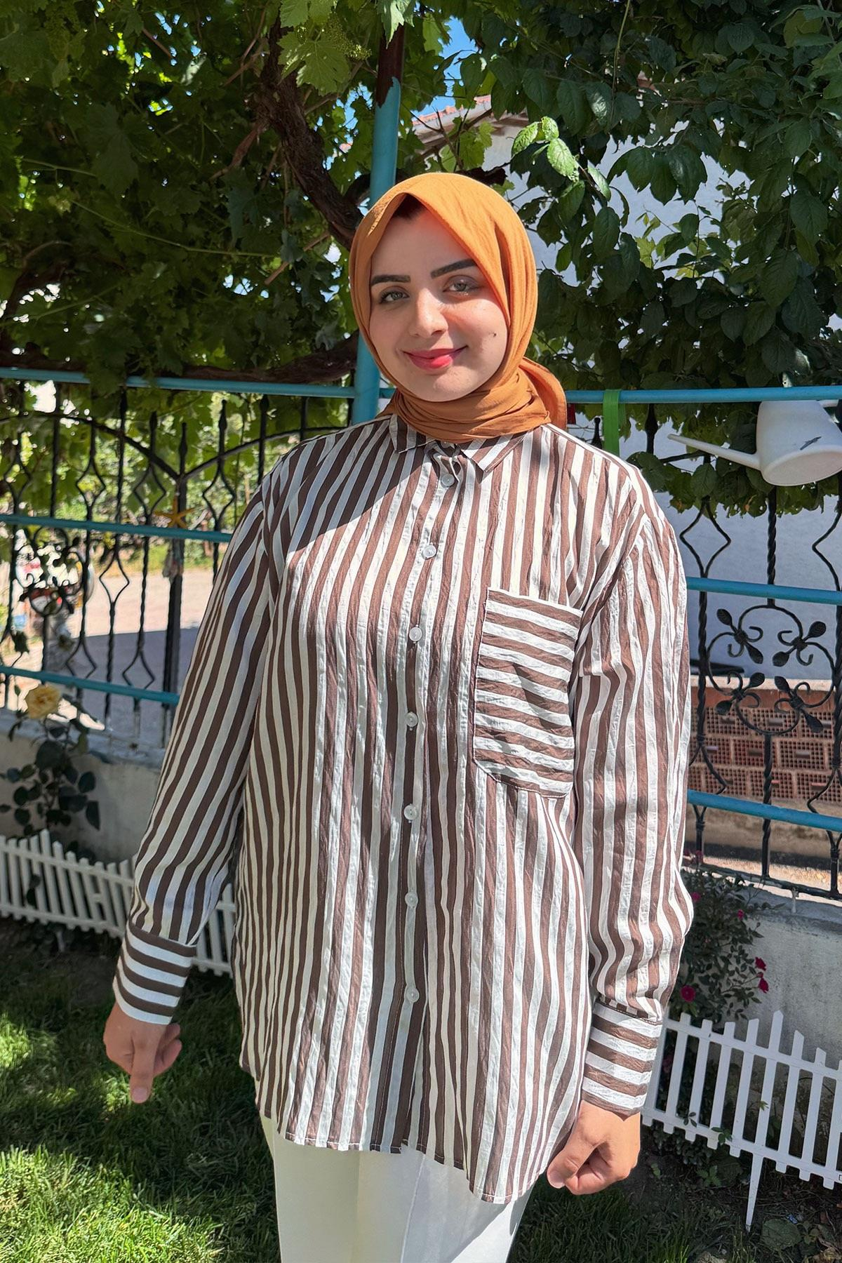 Editör Notu: Çizgili Salaş Gömlek Kahverengi, Modern çizgileriyle dikkat çeken bu gömlek, oversize kesimi sayesinde konforu stille buluşturuyor. Cep ve manşet detaylarıyla hareket kazanan tasarım, günlük kombinler için dinamik bir tercih sunar.