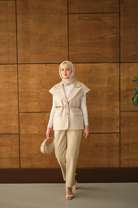 Deri Pantolonlu Yelekli Takım Krem