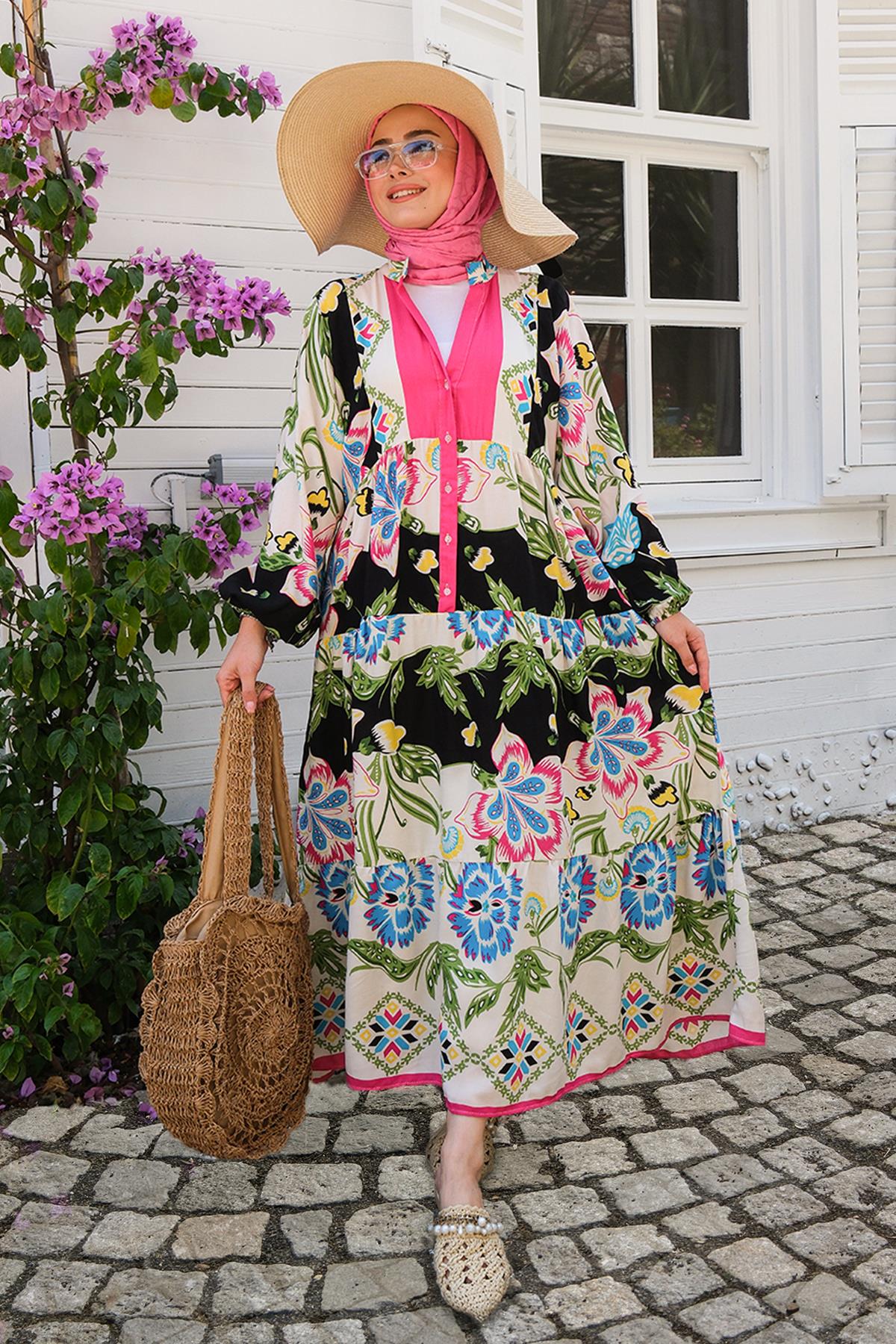 Editör notu: Tarzınıza modern bir dokunuş katacak olan desenli elbise, göz alıcı rengi ve özgün yaka tasarımı ile öne çıkıyor. Bu elbise, çeşitli desenlerin kusursuz uyumunu sunarak, benzersiz ve rahat bir görünüm elde etmenizi sağlar. Yüksek kaliteli viskon kumaştan üretilmiş olan bu elbise, hareket özgürlüğü sağlayan oversize kesimi ile her vücut tipine uygun bir şekilde tasarlanmıştır. Sezonun favori terlik ve sandaletleri ile kolayca kombinleyebilirsiniz. Uzun ömürlü kullanımlar için etiket üzerindeki bakım talimatlarını uygulamanızı öneririz.