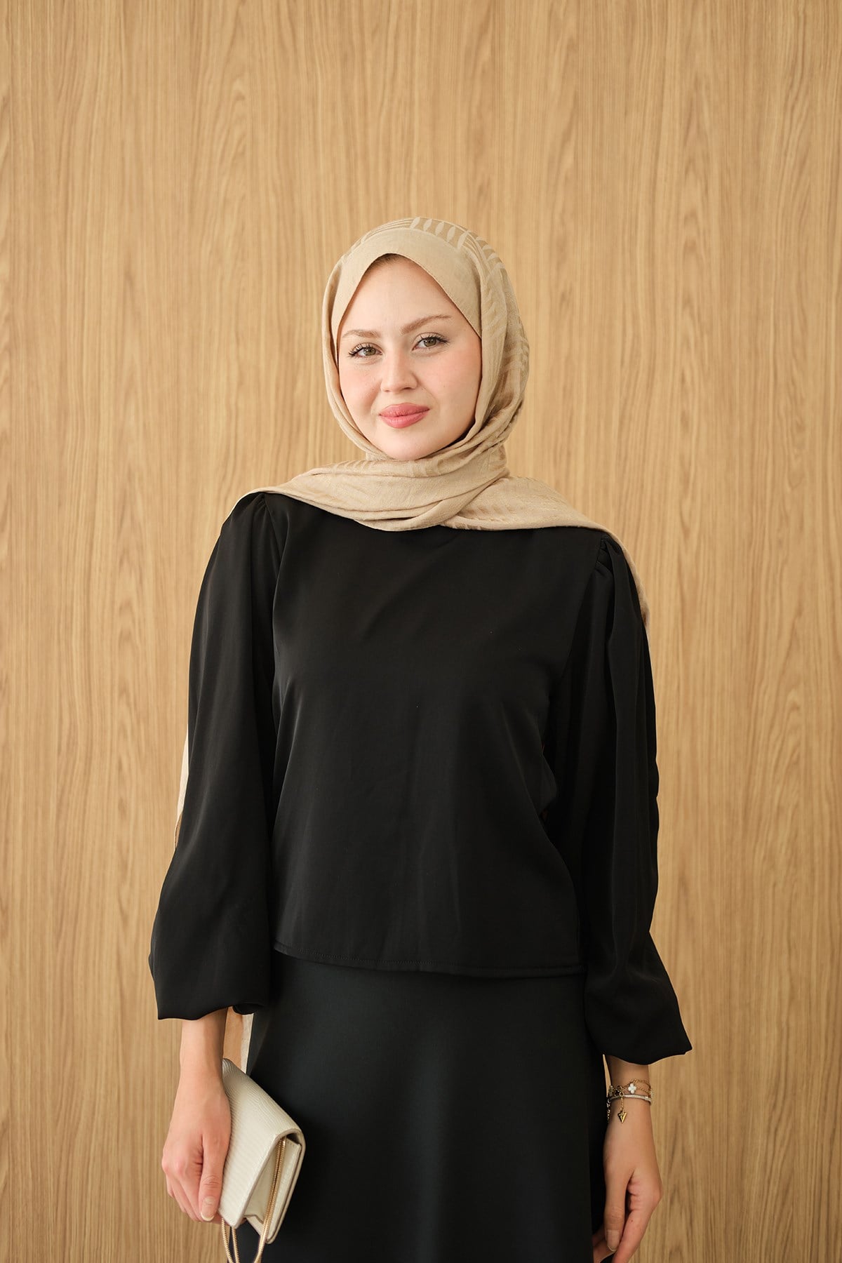Dik Yakalı Ve Balon kol Bluz Siyah
