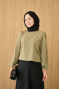 Dik Yakalı Ve Balon Kol Bluz Yeşil