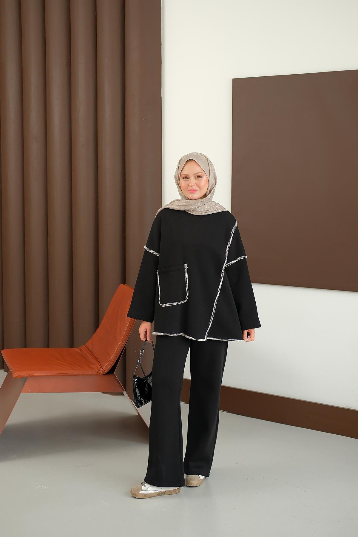 Dikiş Detay Cepli Takım Siyah