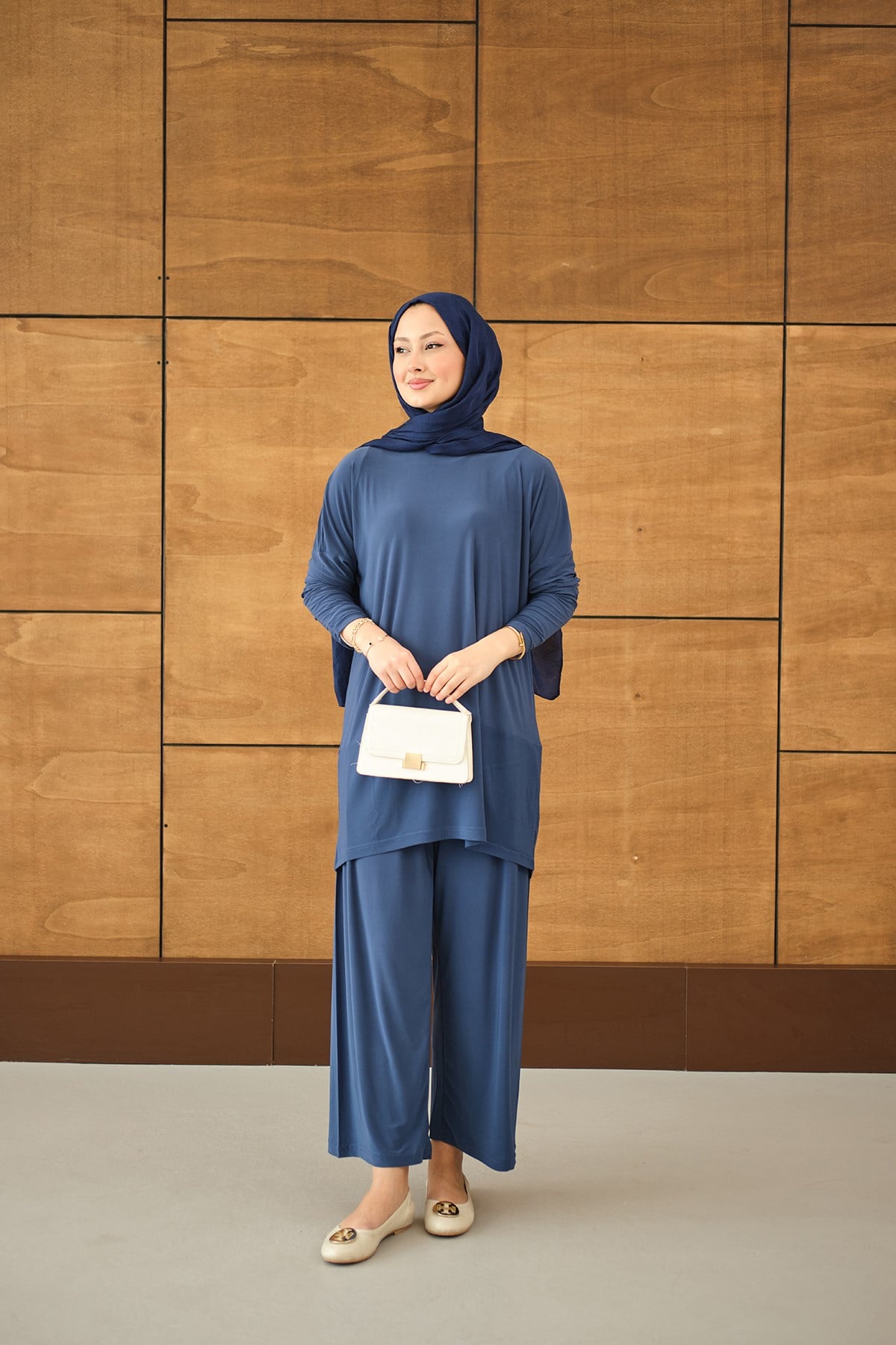 Dikiş Detay Yırtmaçlı Takım İndigo Mavi