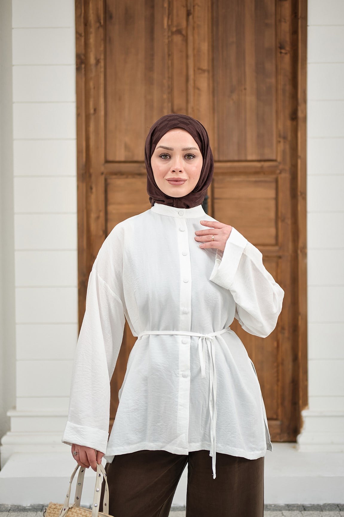 Duble Kol Yırtmaçlı Gömlek Ekru