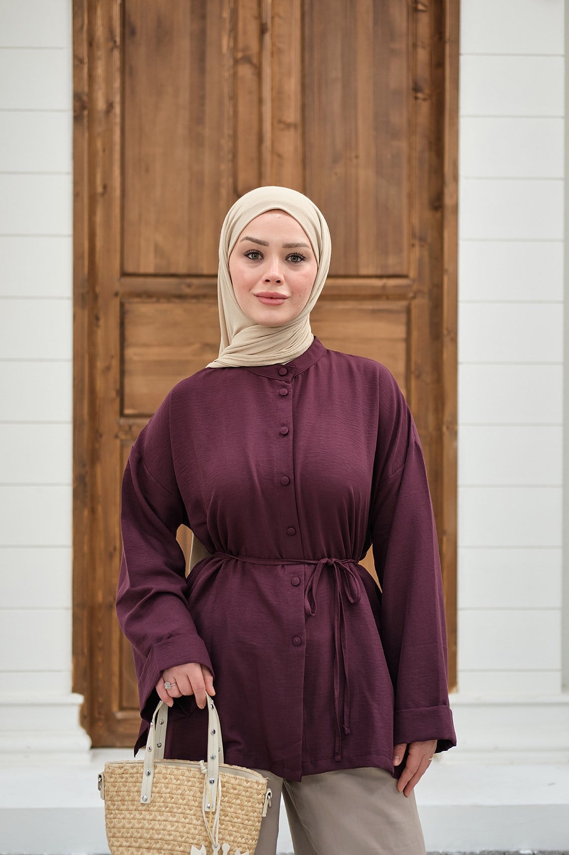 Duble Kol Yırtmaçlı Gömlek Mürdüm