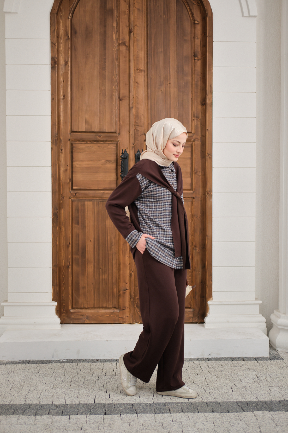 Ekose Desen İkili Takım Kahverengi