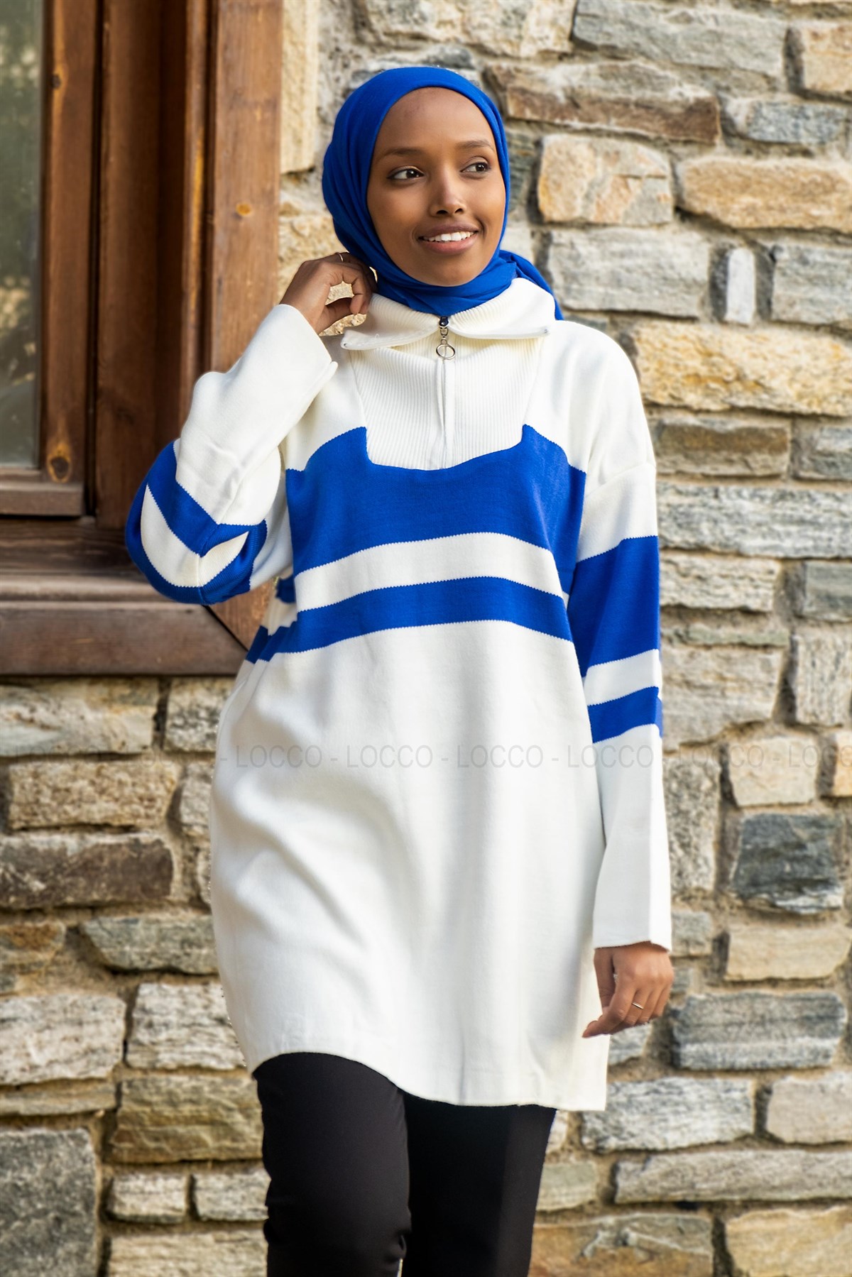CIZGILI FERMUAR DETAYLI TRIKO TUNIK SAX MAVI
