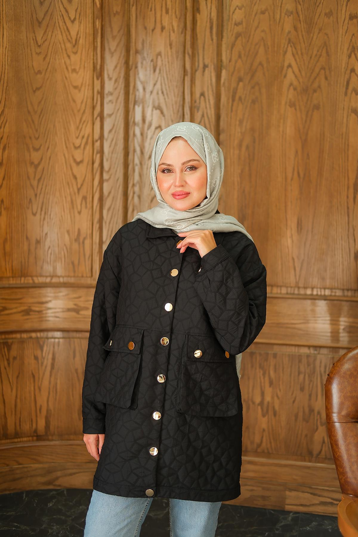 Kapitone Desen Gold Düğme Detay Ceket Siyah