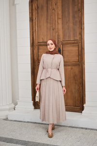 Eteği Pileli Ceketi Yandan Düğmeli Takım Taş