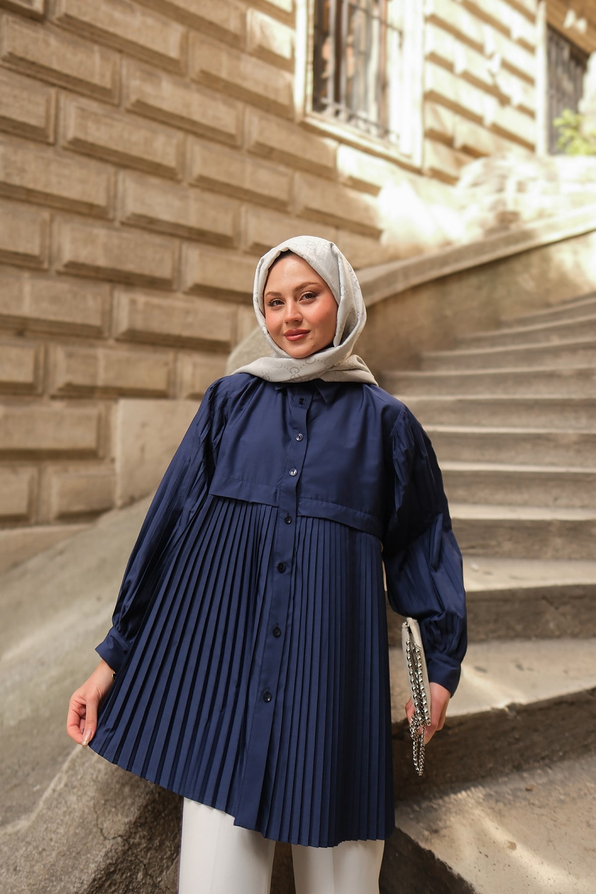 Eteği Pileli Gömlek Lacivert