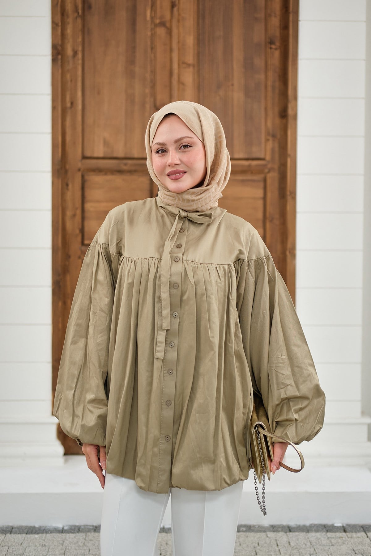 Etek Ucu Büzgülü Gömlek Küf Yeşil