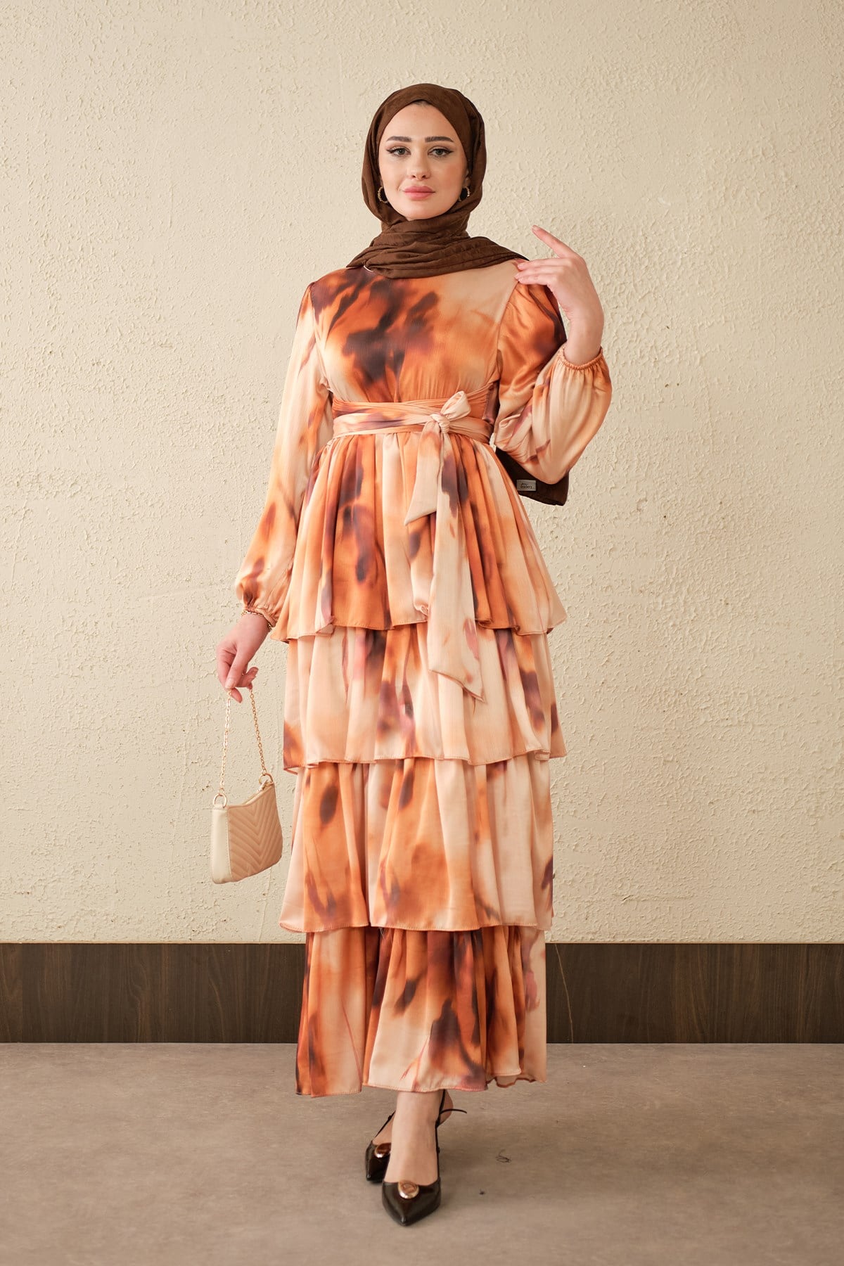 Etnik Deseb Arkadan Bağlamalı Elbise Turuncu