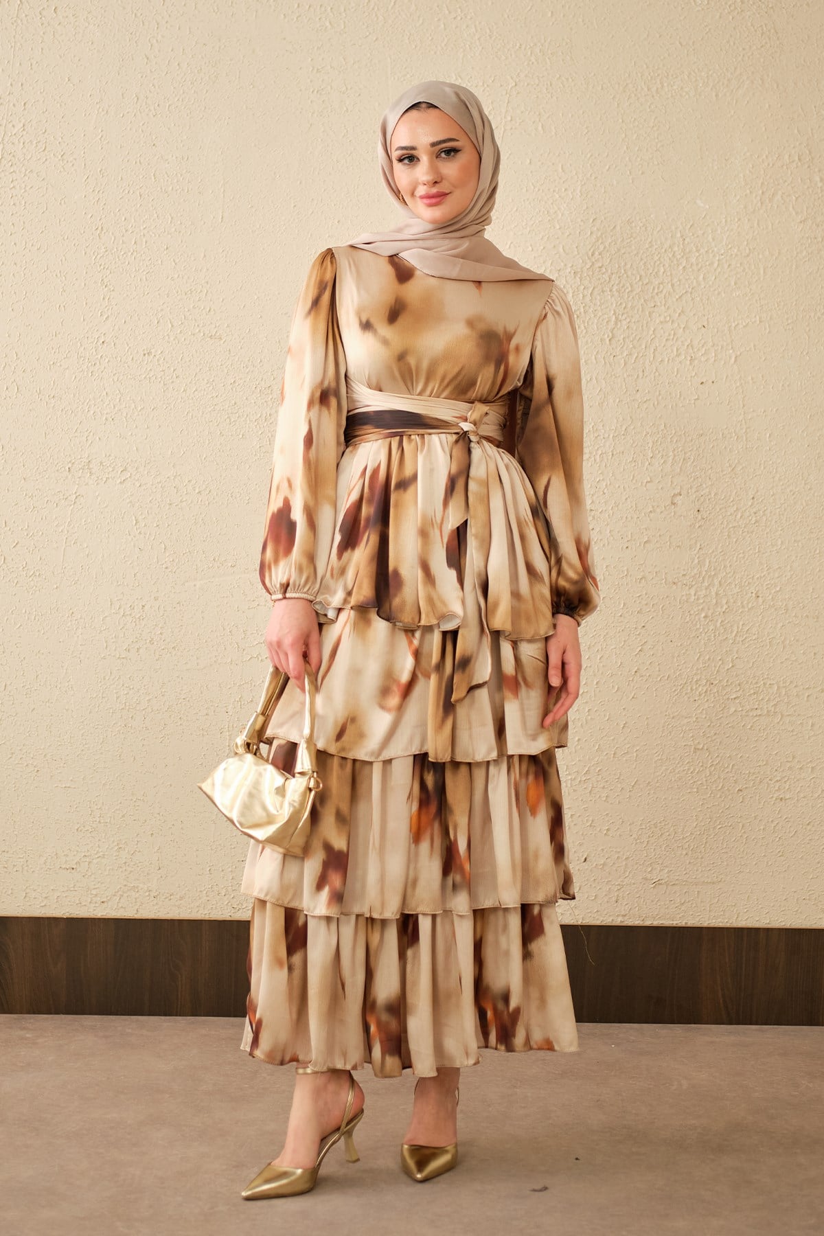 Etnik Deseb Arkadan Bağlamalı Elbise Yağ Yeşil