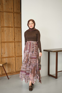 Etnik Desen Asimetrik Kesim Şifon Etek Mürdüm