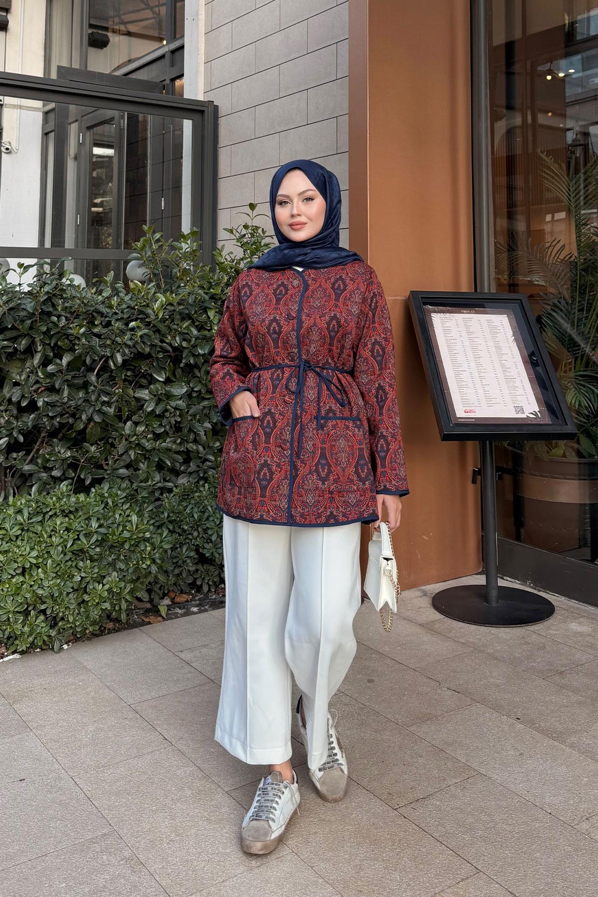 Etnik Desen Ceket Kiremit