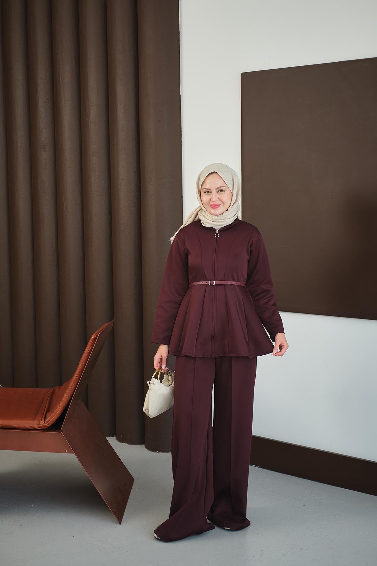 Fermuarlı Scuba Takım Bordo