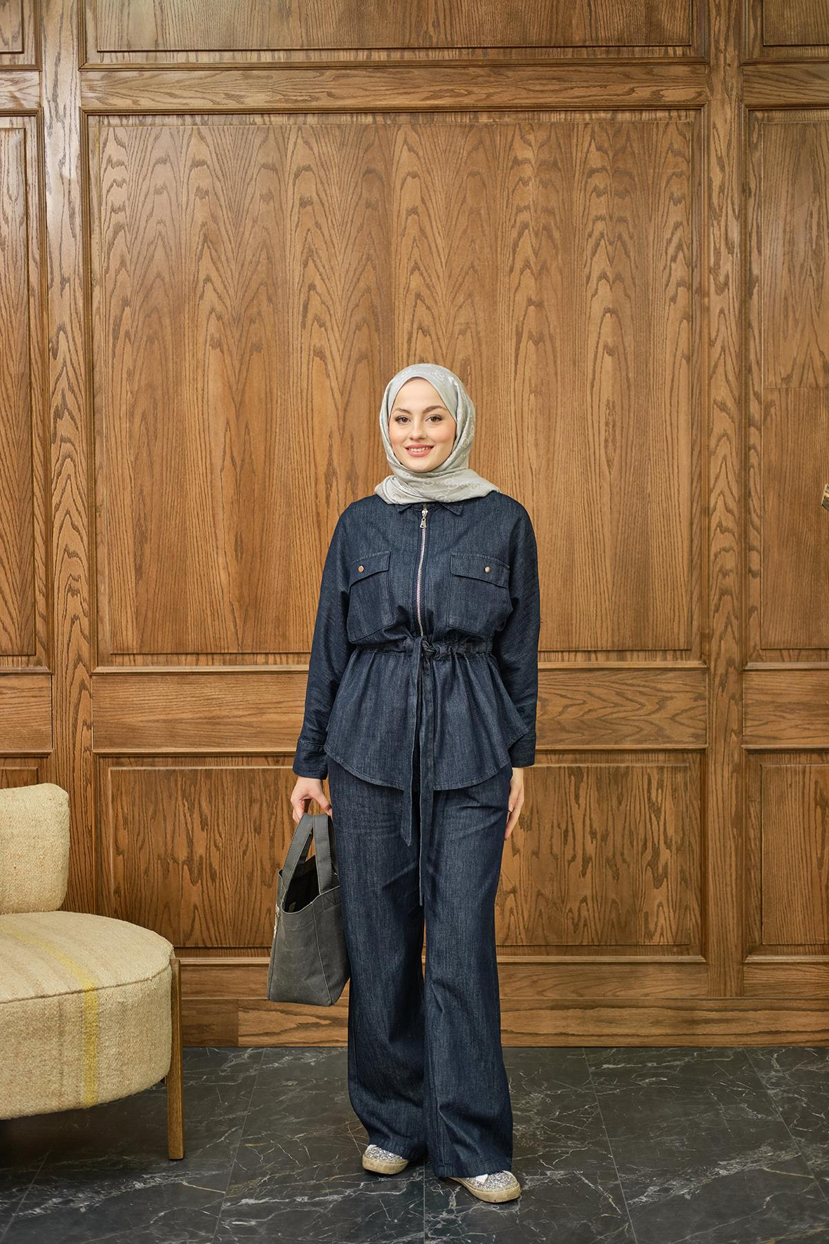 Fermuarlı Kot Takım Lacivert