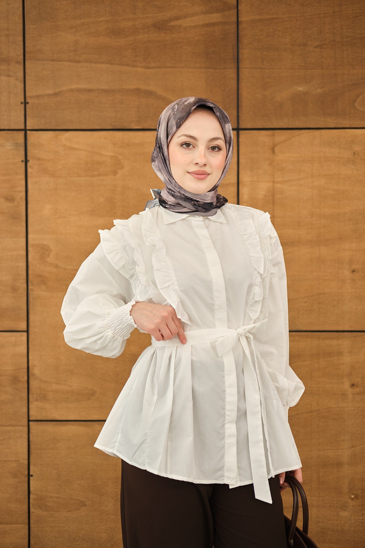 Fırfır Detaylı Gömlek Beyaz