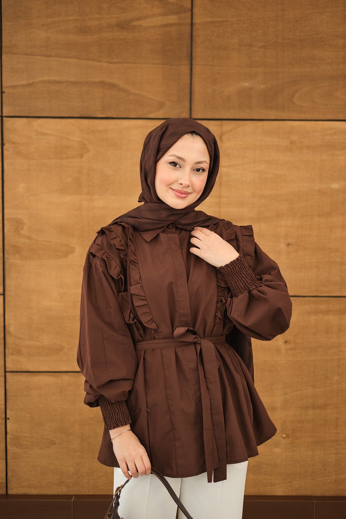 Fırfır Detaylı Gömlek Kahverengi