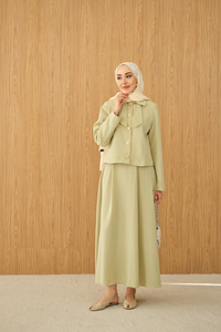 Fiyonk Görünümlü Çift Yaka Takım Su Yeşil