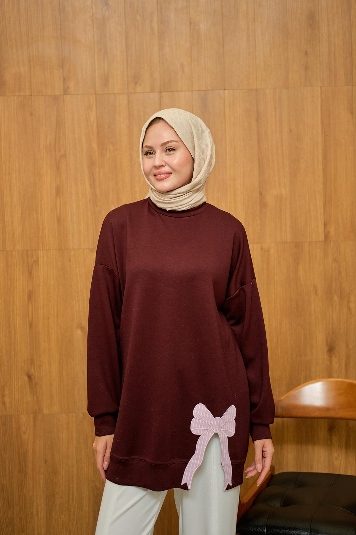 Fiyonk Nakışlı Tunik Bordo