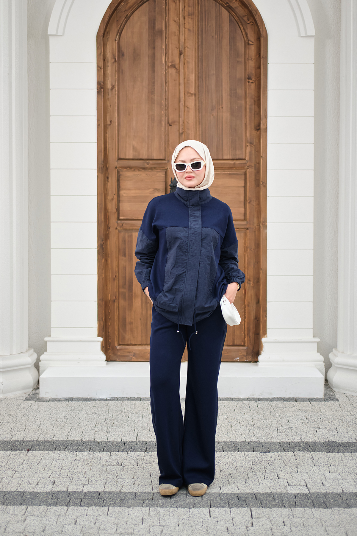 Garni Detaylı Bağcıklı Takım Lacivert