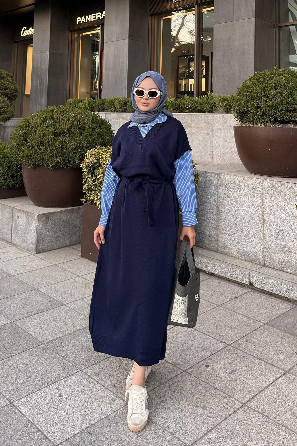 Garnili Triko Elbise Lacivert