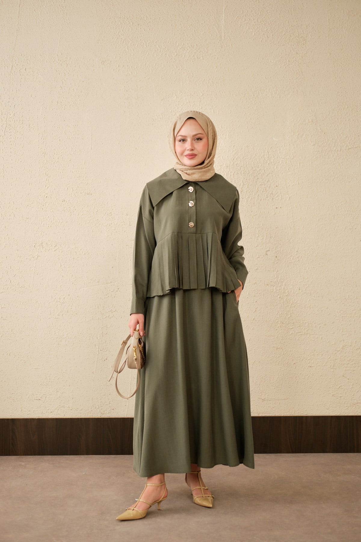 Gemici Yaka Fırfır Detay Takım Haki Yeşil