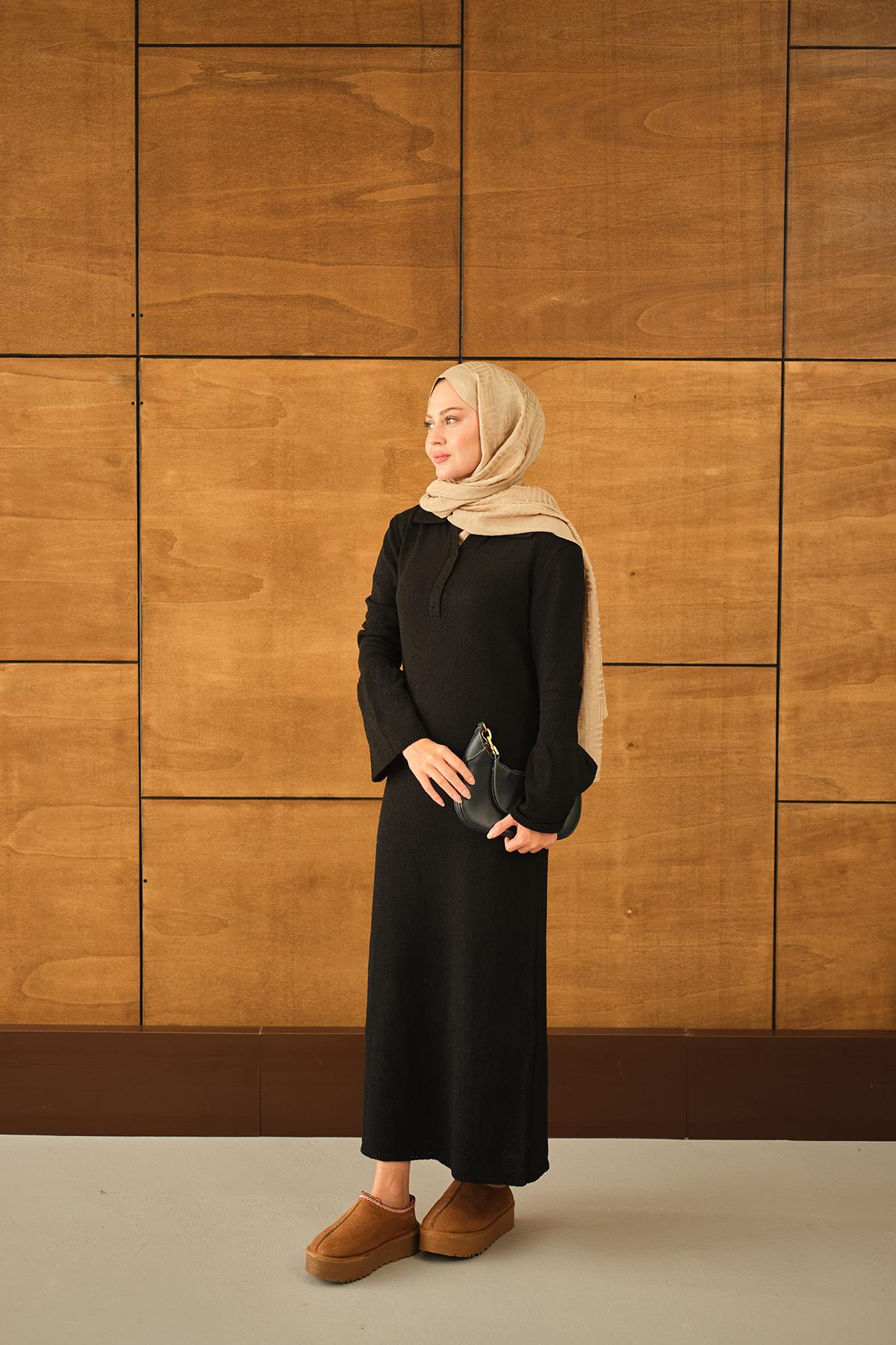 Geniş Kol Triko Elbise Siyah