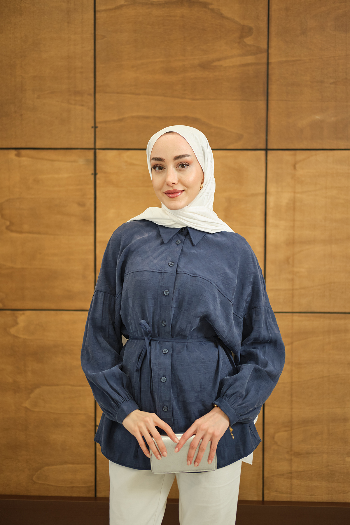 Geometrik Desen Jakar Gömlek Mavi