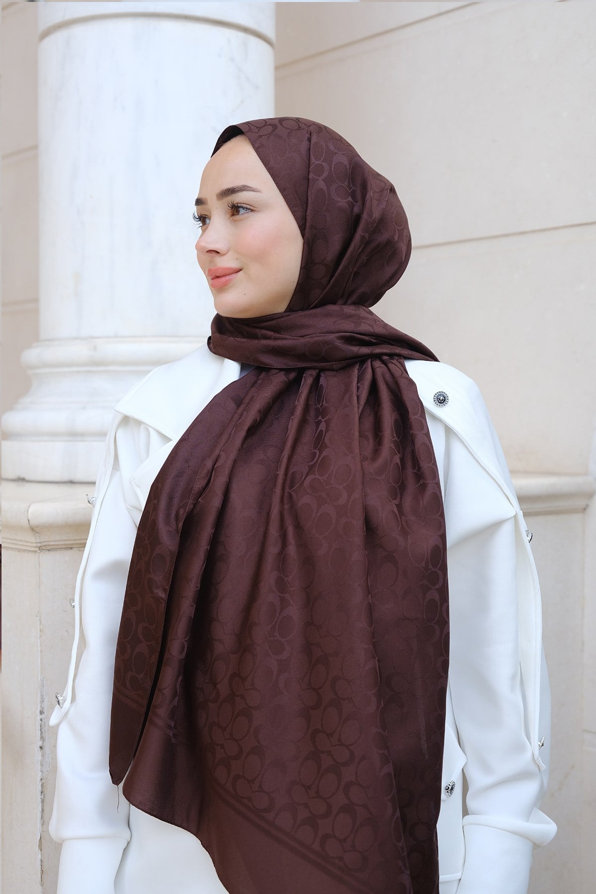 Geometrik Desen Jakar Şal Acı Kahve