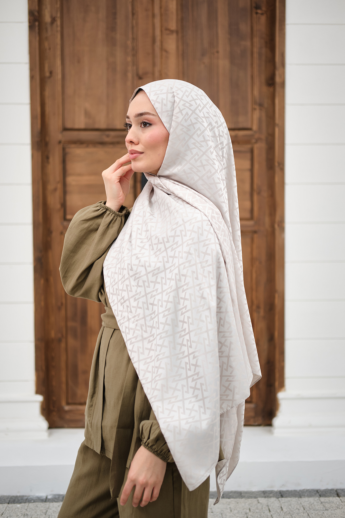 Geometrik Desen Şal Bej