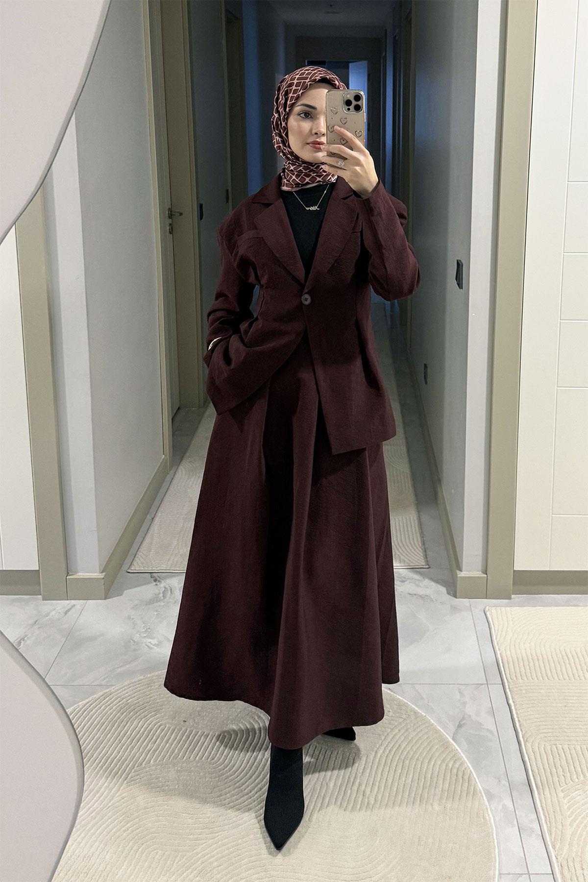 Gizli Cep Ve Önü Pile Detaylı Takım Bordo
