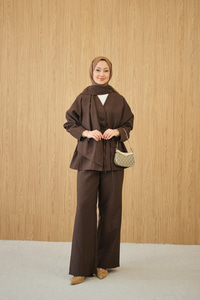 Gizli Düğme Detay V Yaka Takım Kahverengi